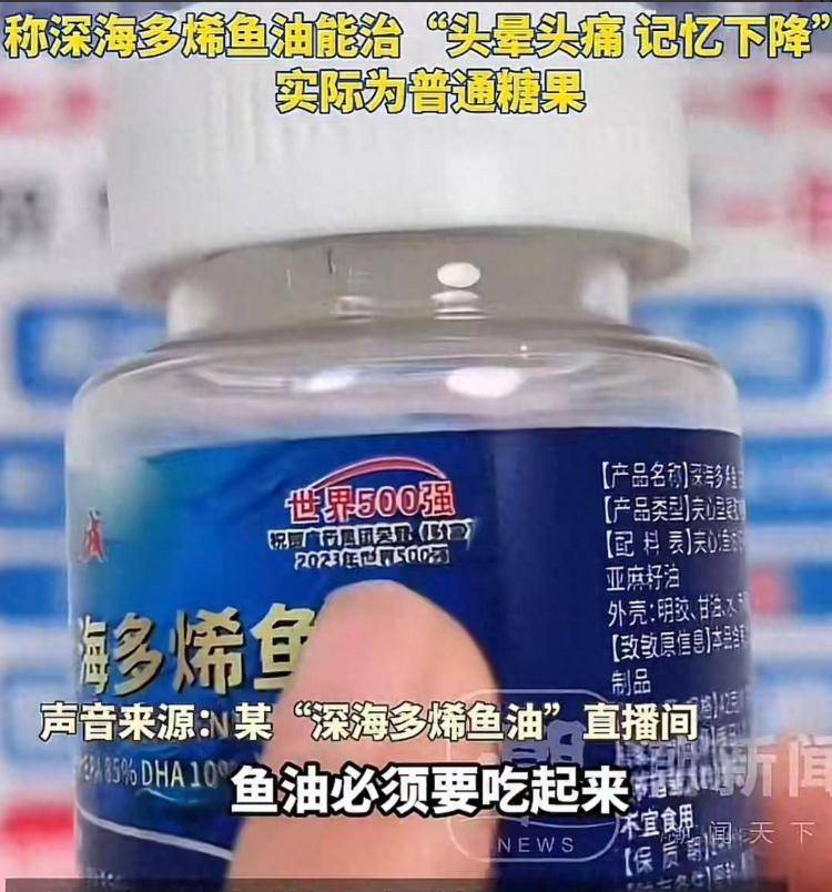 曲播间里能“给血管洗澡”“固发养发”的深海鱼油,成了此次制假风浪的沉灾区。不少从播把这类产物吹成“神药”,打着高纯度的灯号,价钱卖得比通俗保健品贵出好几倍,吸引了大量白叟和家长采办。