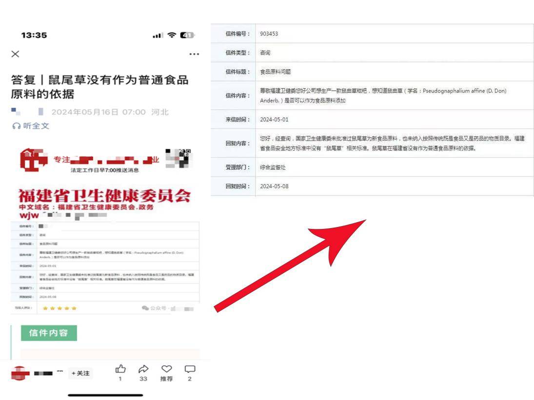 配料表中的“鼠尾草”涉嫌违规,按照福建省卫生健康委员会正在2024年5月8日针对编号903453的征询答复中明白指出,国度卫生健康委未核准鼠尾草为新食物原料,也未将其纳入药食同源物质目次,福建省亦无相关处所尺度根据,因而鼠尾草不得做为食物原料添加利用。