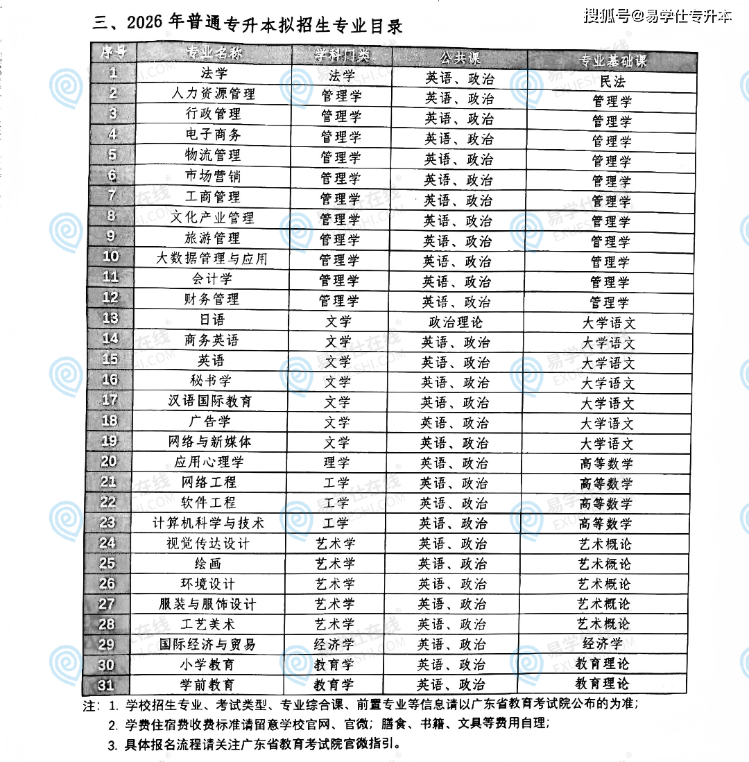 2026年通俗专升本(统考)拟招生专业共15个。拟新增招生专业3个:数字手艺、数字艺术。广东培正学院2026年通俗专升本拟招生专业共31个。涵盖、办理学、文学、理学、工学、艺术学、经济学、